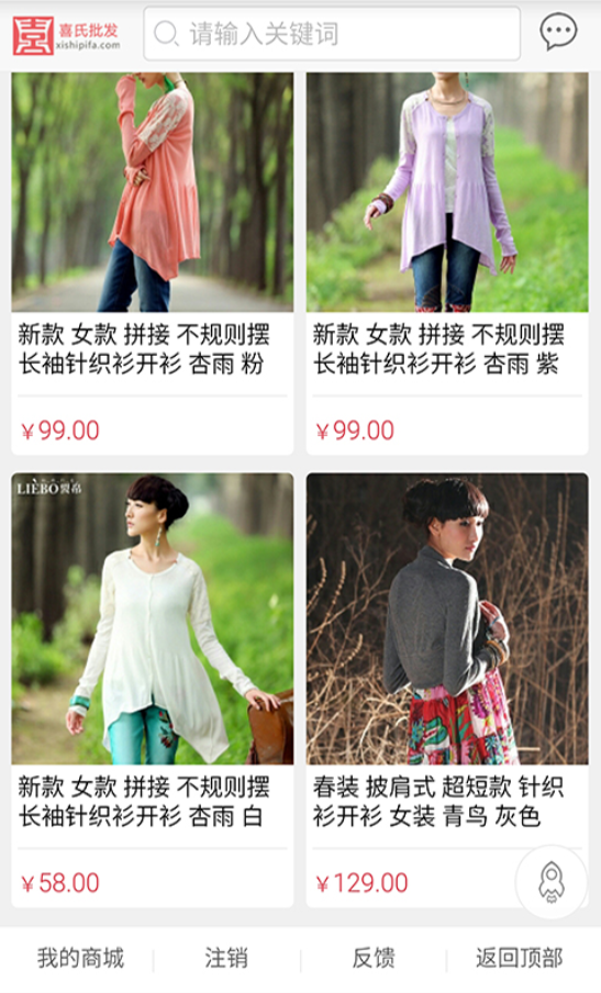 喜氏批发app是一款网络购物应用,是云南喜氏电子商务有限公司旗下的移动产品。在喜氏批发app中你可便捷的查看产品信息,在线进货。