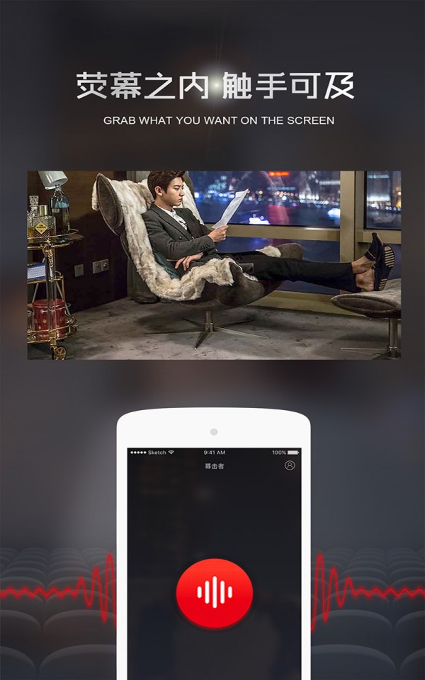 幕击者是一款可以识别影视中商品的APP,用户在看电影的过程中发现心仪的商品,只需打开幕击者并激活音频识别功能,幕击者就能通过音频分析来识别当前的电影画面中出现的商品并提供购买服务。