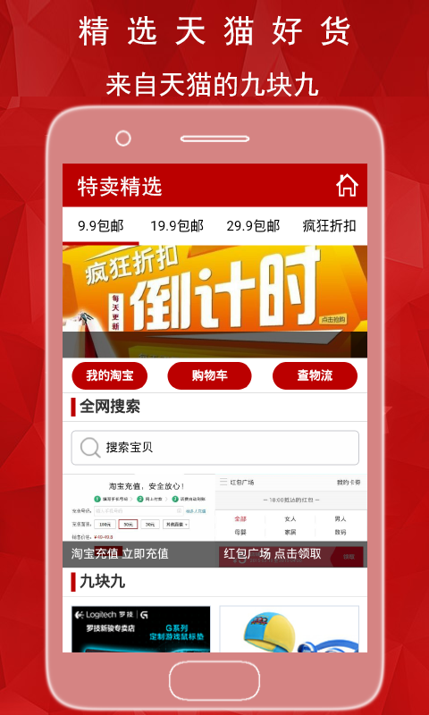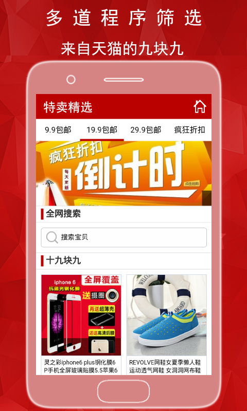 最省钱的网购APP,特卖精选来自于天猫官网的九块九!