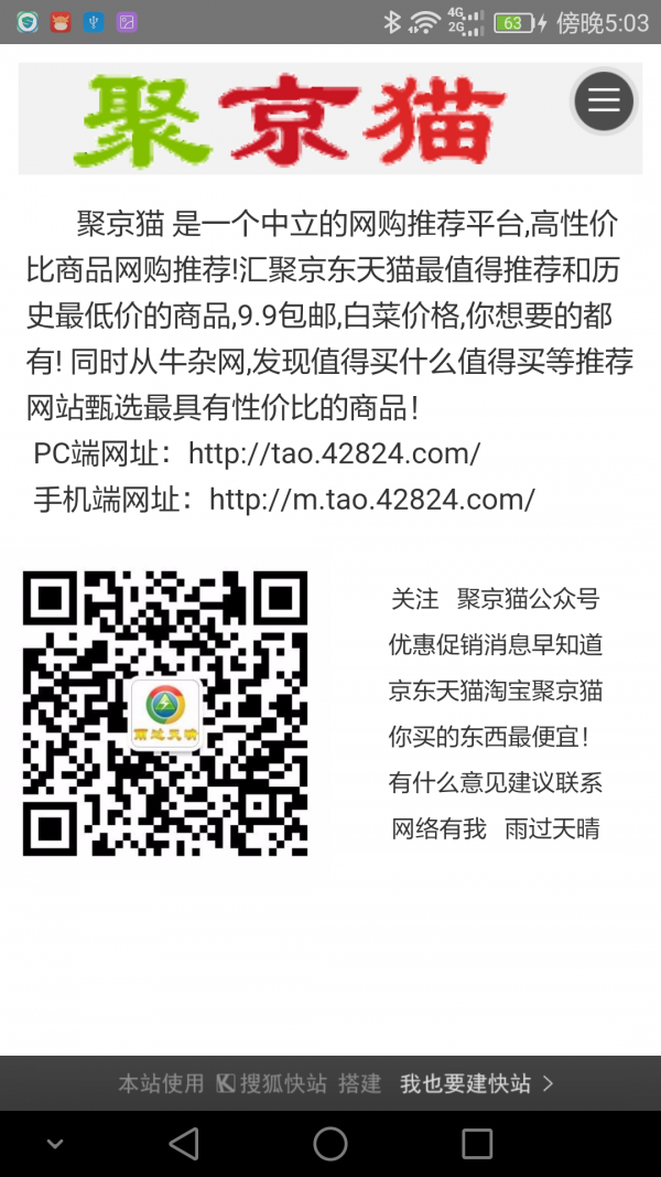 聚京猫app是一个中立的网购推荐平台,高性价比商品网购推荐!汇聚京东天猫淘宝最值得推荐和历史最低价的商品及特价促销优惠秒杀等信息,还有九块九包邮,白菜价格,你想要的都有!