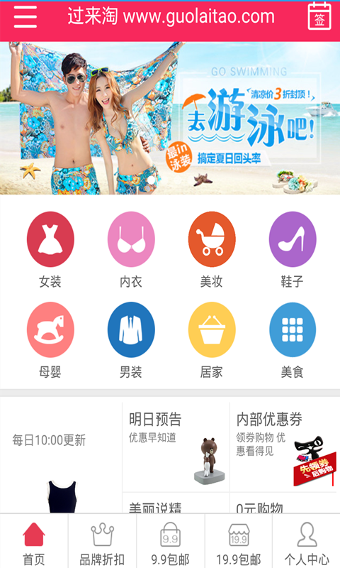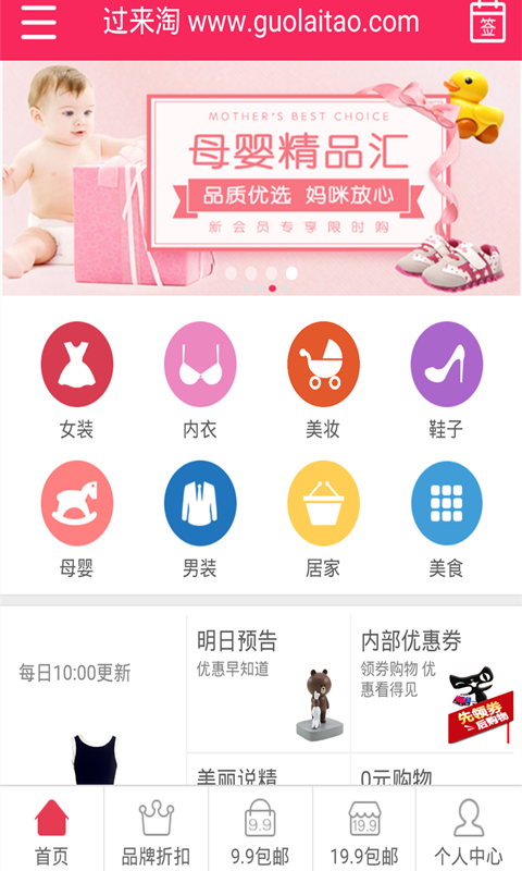 过来淘APP手机必备购物神器 职业砍价团队每日帮您从淘宝、天猫商城挑选超高性价比商品,为您提供最便捷省钱的方式。积分免费兑换商品,参加试用活动等。淘宝达人为您分享质优好货,教您时尚穿搭,变身时尚达人。