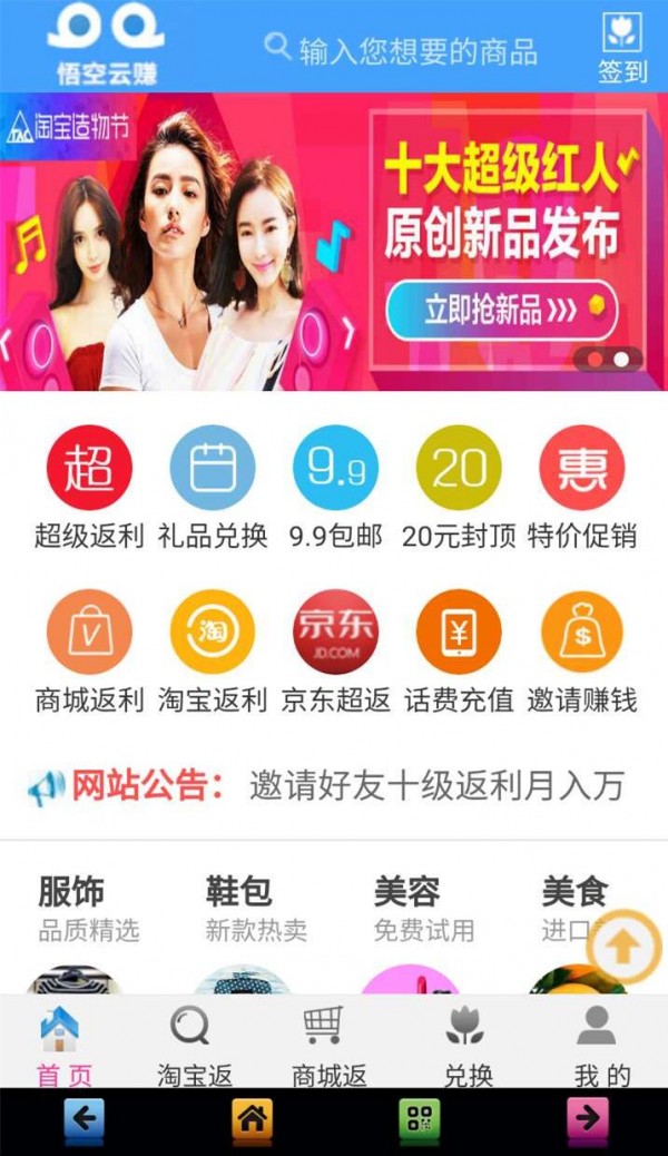 悟空云赚app是一款网络购物应用,是个分享型返利创业平台。悟空云赚app与多家B2C网上商城合作,旨让用户们可享受实惠的返利服务。
