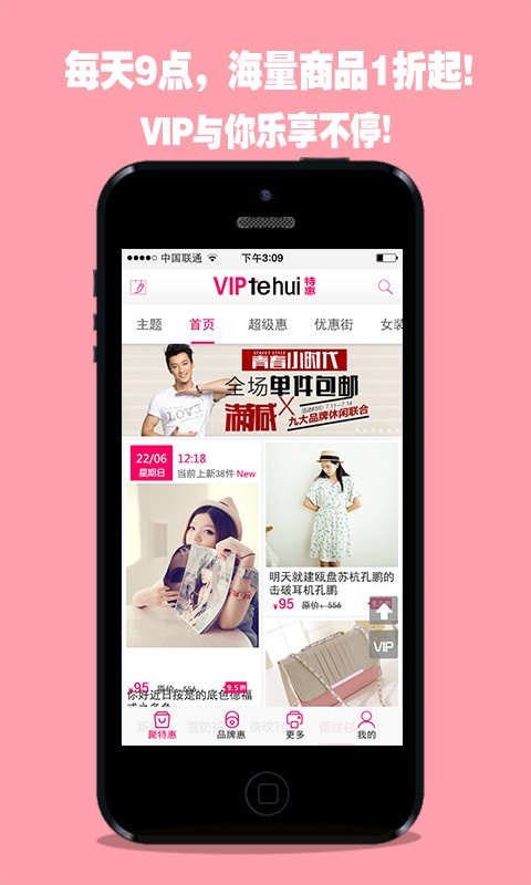 VIP特惠每天千余款特惠精选9.9元包邮商品更新推荐,藏不住的诱惑就在VIP特惠,千万用户网购选择!