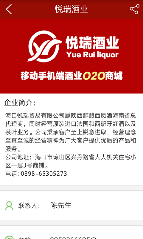 海口悦瑞贸易有限公司属陕西醇酿西凤酒海南省总袋里商,同时经营原装进口法国和西班牙红酒以及茶叶业务。公司秉承客户至上锐意进取,经营理念至真至诚的经营精神为广大客户提供优质的产品和服务。