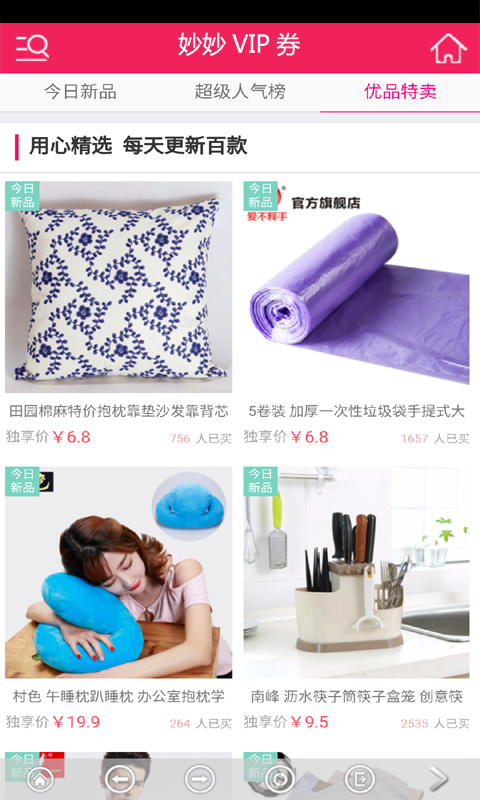 妙妙内部券app是一款优惠类的软件,通过妙妙内部券app你可以以更低的价格购买到自己需要的产品,对于喜欢购物的朋友来说非常的不错。