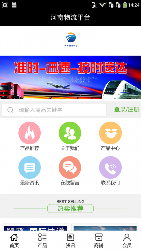 河南物流平台客户端不仅具备购物、查询订单、搜索商品、行业资讯和产品评价等常用功能,而且还实现了手机版特有的会员注册登录、广告位、招商开店等功能。目标是整合当地品牌商、生产商、经销商,为商家和消费者之间提供一站式解决案。欢迎下载使用!
