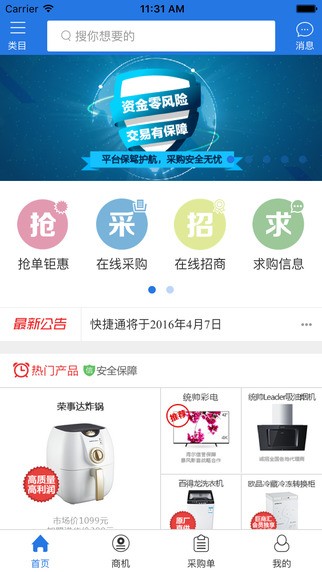 巨商汇app是由海尔集团投资打造的专业家电工厂直销服务平台,通过巨商汇app家电厂家能够找到优质的经销商,并低成本地实现交易和渠道管理;让 经销商直接与原厂做生意,拿到一手的产品,没有中间差价,让厂家和经销商无后顾之忧地做生意。