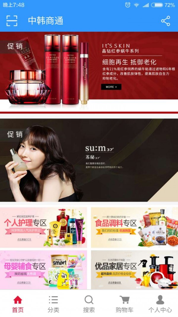 “中韩商通” 100%韩国正品品直购的跨境电商平台,涵盖个护美妆、进口零食、保健品、母婴用品、生活电器五大品类。为喜爱韩国商品的消费者提供优质生活全方位解决方案,不用再去韩国乐天免税店!