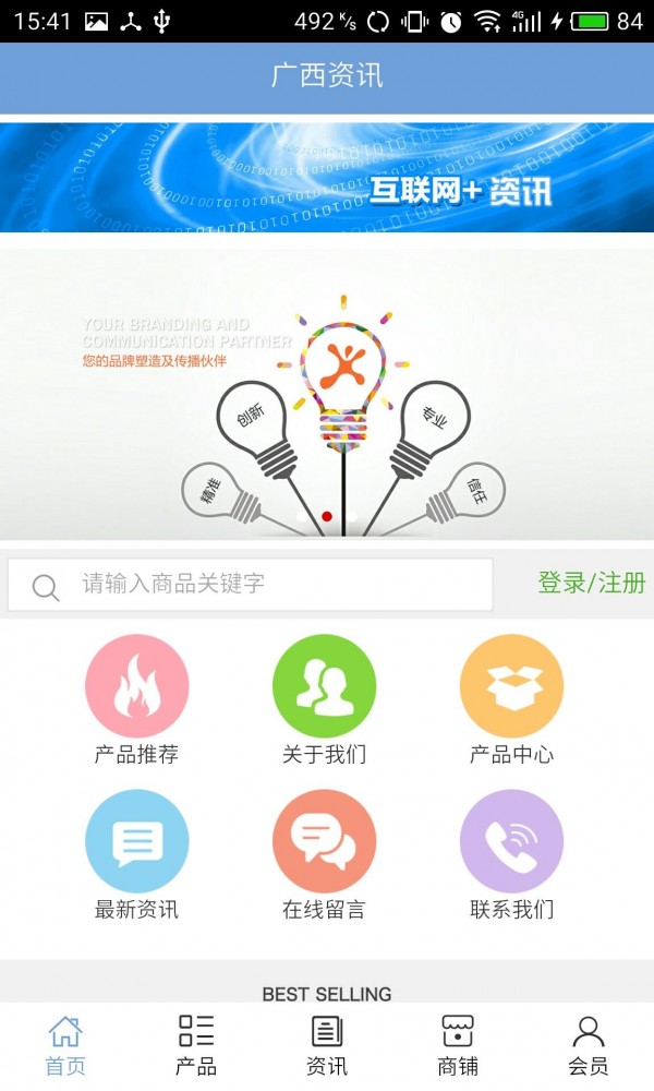 广西资讯客户端不仅具备购物、查询订单、搜索商品、行业资讯和产品评价等常用功能,而且还实现了手机版特有的会员注册登录、广告位、招商开店等功能。目标是整合当地品牌商、生产商、经销商,为商家和消费者之间提供一站式解决案。欢迎下载使用!