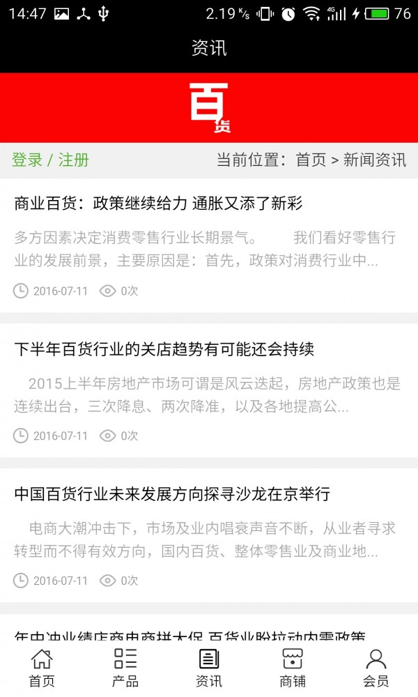 该客户端不仅具备购物、查询订单、搜索商品、行业资讯和产品评价等常用功能,而且还实现了手机版特有的会员注册登录、广告位、招商开店等功能。目标是整合当地品牌商、生产商、经销商,为商家和消费者之间提供一站式解决案。欢迎下载使用!