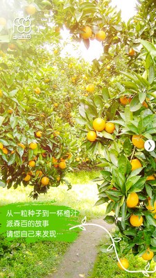 我们20年专注一事,完成了从一粒籽、一株苗、一片林、一个果到一杯汁的全程可追溯全产业链。派森百22万亩专属果园,是其纯正皇室血统原榨橙汁的车间;果实成熟期采摘、离树24小时榨取是其真正零添加品质的基础保障。