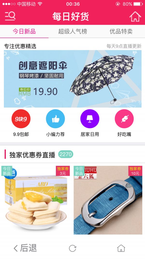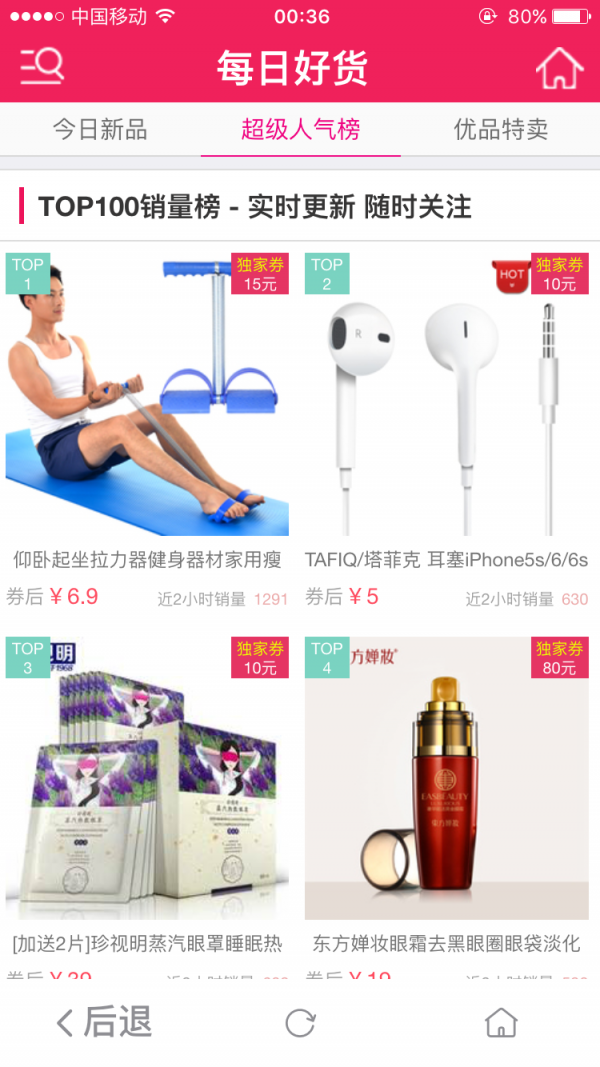 你还在每天秒杀九块九包邮吗? 太LOW了! 来每日好货,看看什么才是真正的特价秒杀! 上千张店铺优惠券拿到手软! 各种名牌店铺内部优惠券独家发放!7折扣?5折?不!这里一折起!