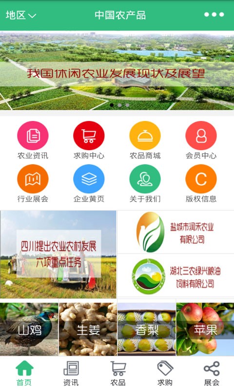 中国农产品app是一款网络购物应用,是贵州云创商道科技有限公司旗下的移动商城。中国农产品app主要为大家提供农产品的相关服务,让大家可在线选购农产品,及时查阅/获取供求信息和价格情报信息等。