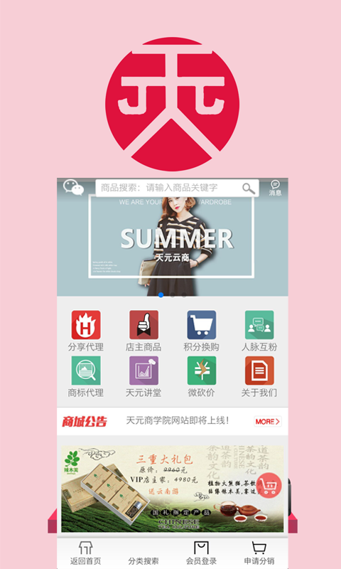 天元云商app是一款网络购物应用,是巴马天元旗下移动商城。在天元云商app中你可在线选购商品、查看产品信息,以及享受贴心的售后服务。