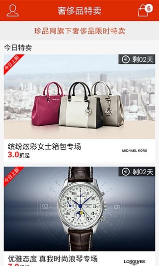 2、【手机专享优惠】随时搜索、收藏、查询、购买,奢侈品特卖拥有传统渠道无法比拟的价格优势,贴心开售提醒。