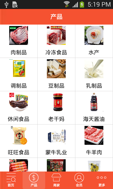 【产品】:甘肃食品批发网app提供相关各种产品分类,方便客户查询购买。