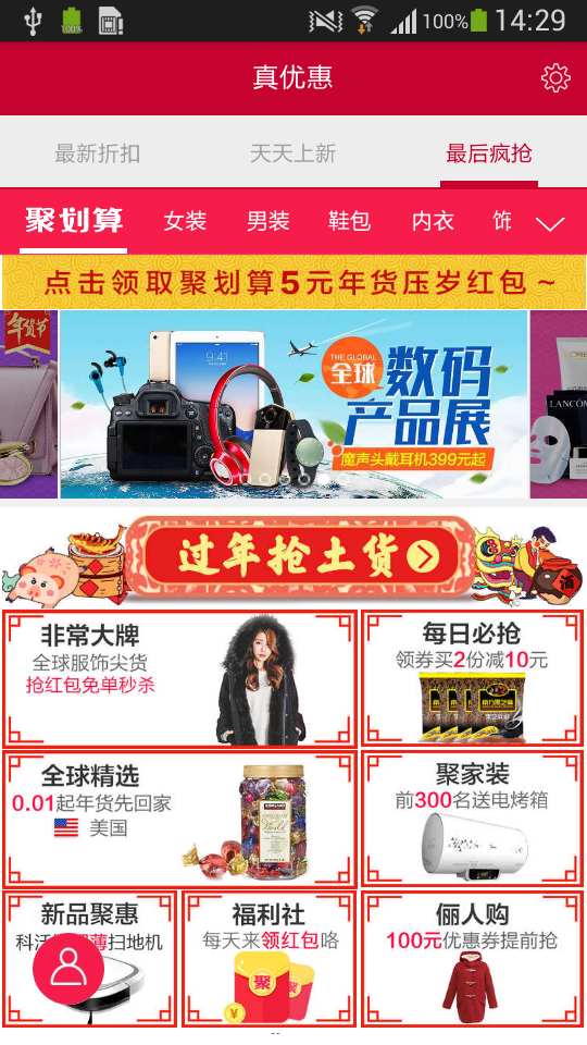 特卖海选:专业选款师从海量宝贝中精选出最性价比的宝贝,覆盖女装、男装、鞋帽、母婴童装、美妆、箱包、数码、居家百货、家具、家电等多种类特价商品。