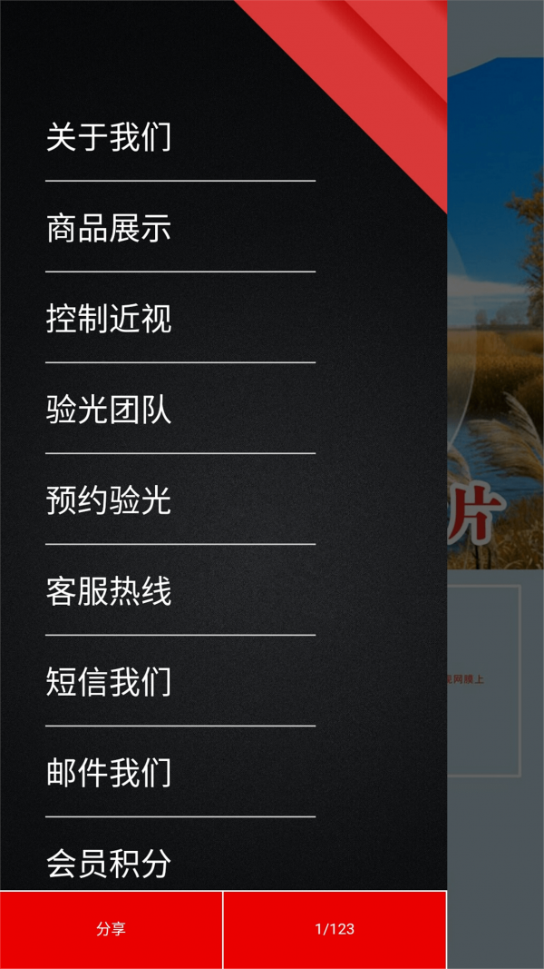品牌展示:APP内的关于我们、商品展示、验光团队、广告视频及相册为展示企业形象、品牌调性的窗口。