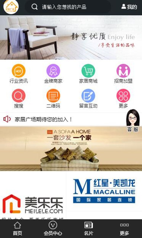 家居广场app是一款家居商城应用,用户可以通过软件获取家居行业最新的行情资讯,方便用户在这里加盟招商,同时轻松选购需要的优质家居商品。