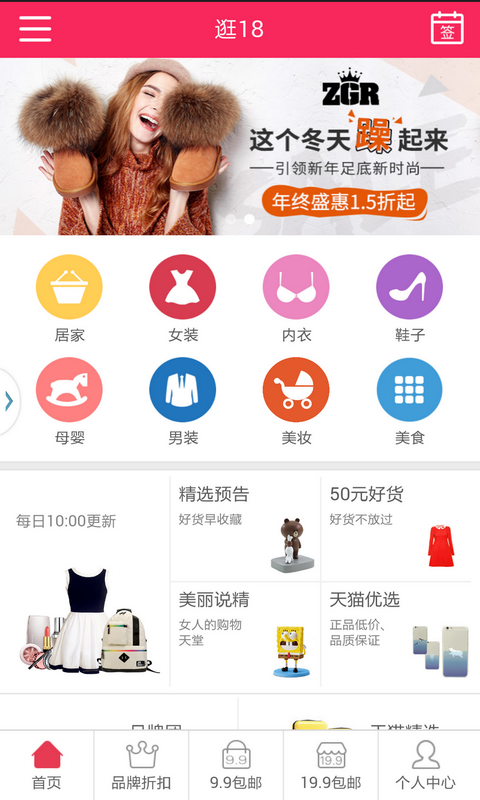 逛18app是国内一个专为大学生、中学生、白领及各阶层服务的一家专注网购省钱的折扣精选特卖网站。每日汇聚各大电商所有折扣精品,以更低的价格优惠,严格的样品质检和服务监督,为广大的用户提供实惠的商品和完整的网购服务,是目前中国成长快速的电子商务企业之一。