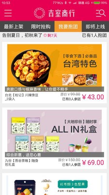 台湾吉室商行app囊括全台优质正货,包含美食、彩妆、生活用品等等,所有商品都是产地直邮,缩短了两岸之间的距离,让你一饱口福,尽情饕餮。吉室商行是带领所有人,真正深度认识台湾,了解台湾,并开始爱上台湾的东西.吉事商行卖的不仅是安全的商品,还有浓浓台湾文化的精神传承。台湾文化,让没来过的人倾心、让来过的人难忘。吉室商行客户端互动,让你只有想不到没有没不淘到的问题。