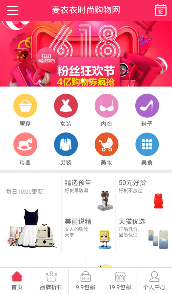 麦衣衣客户端是麦衣衣时尚购物网手机客户端软件。与麦衣衣时尚购物网功能完全相同。我们为用户每日提供上千种优惠商品信息,其中不乏各大商家一折促销活动以及九块九包邮商品的推荐。同时,软件为用户提供一键领取现金优惠券的功能,即买即减,真正方便用户在购物的过程中享受到更多的优惠,真正做到购买到的东西物有所值!