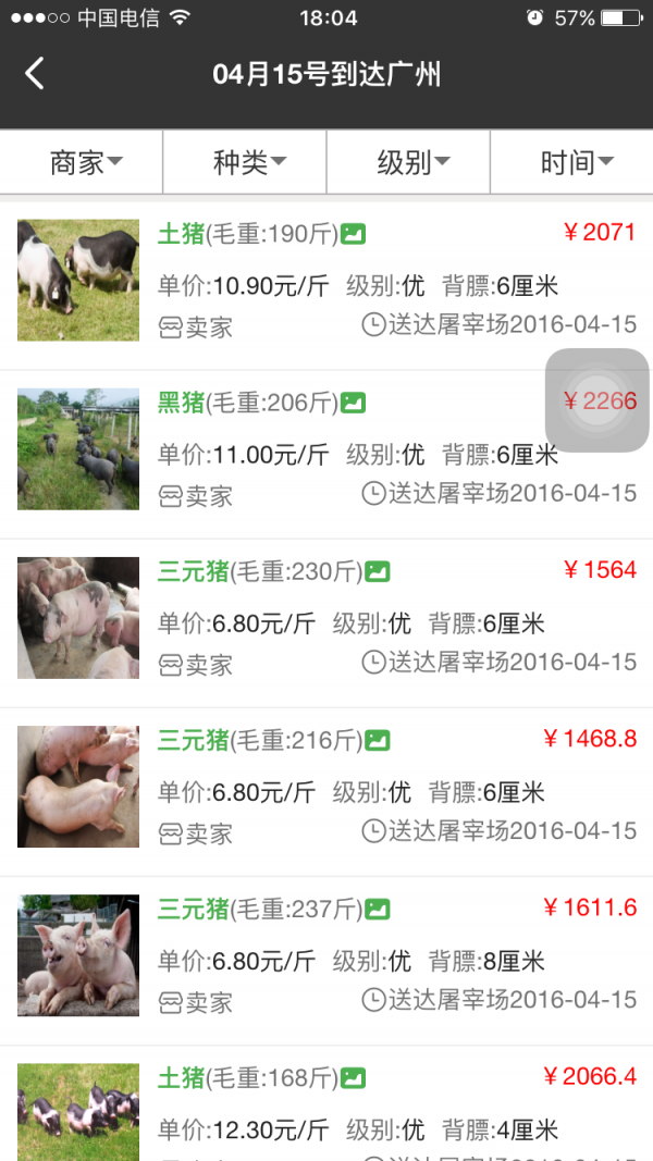 飞猪网买家版app,致力于建立一个网上的生猪交易平台,为现有线下的个体肉贩、养殖户、屠宰配送商提供便捷、高效、精准的服务,并通过平台的大数据分析,准确预测市场信息,平抑猪价波动,解决“猪周期”的问题;同时完善现有的食品安全可追溯体系!采购生猪更简单,省时省力,是猪肉从业人员最好的伙伴!