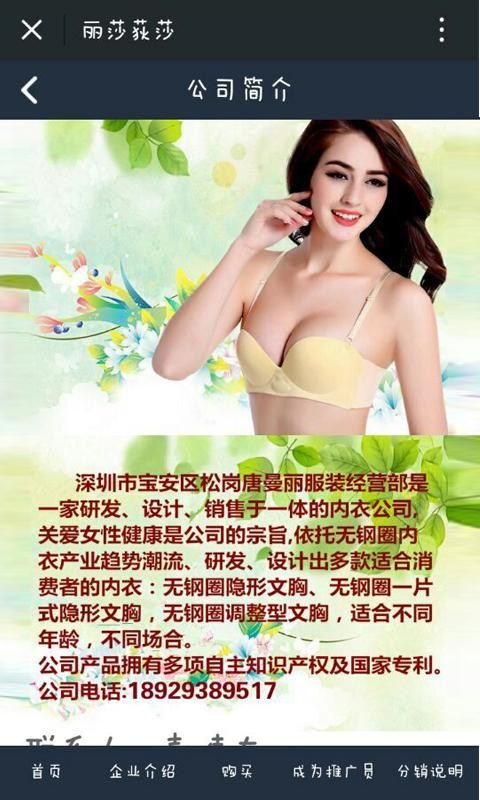 深圳市宝安区松岗唐曼丽服装经营部是一家研发、设计、销售于一体的内衣公司,关爱女性健康是公司的宗旨,依托无钢圈内衣产业趋势潮流、研发、设计出多款适合消费者的内衣:无钢圈隐形文胸、无钢圈一片式隐形文胸,无钢圈调整型文胸,适合不同年龄,不同场合。