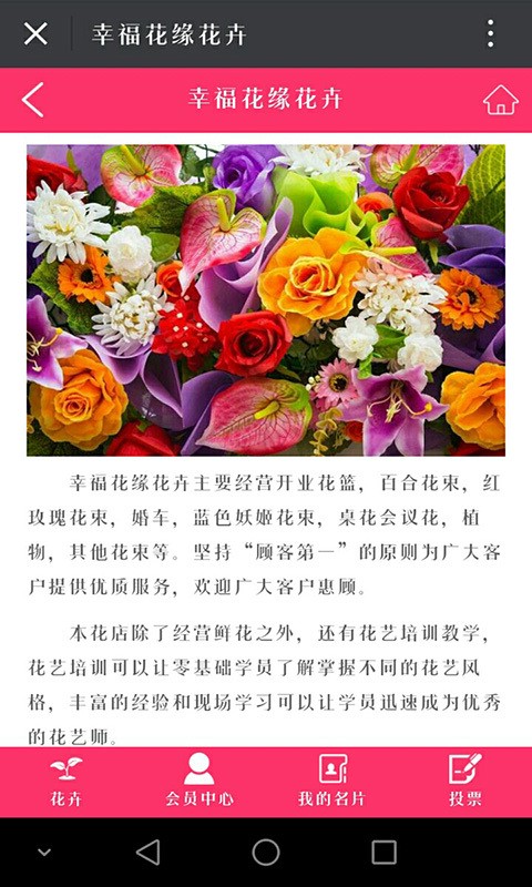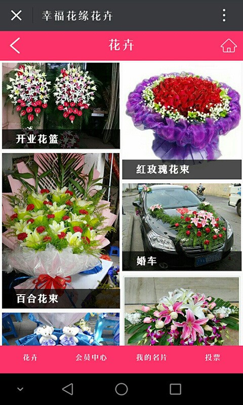 幸福花缘花卉主要经营开业花篮,百合花束,红玫瑰花束,婚车,蓝色妖姬花束,桌花会议花,植物,其他花束等。坚持“顾客至上”的原则为广大客户提供优质服务,欢迎广大客户惠顾。