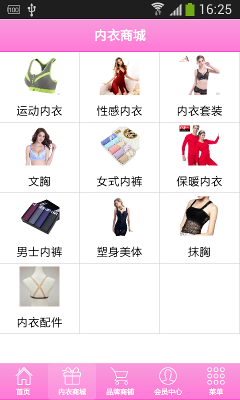 【内衣商城】:本应用提供相关各种产品分类,方便客户查询购买。