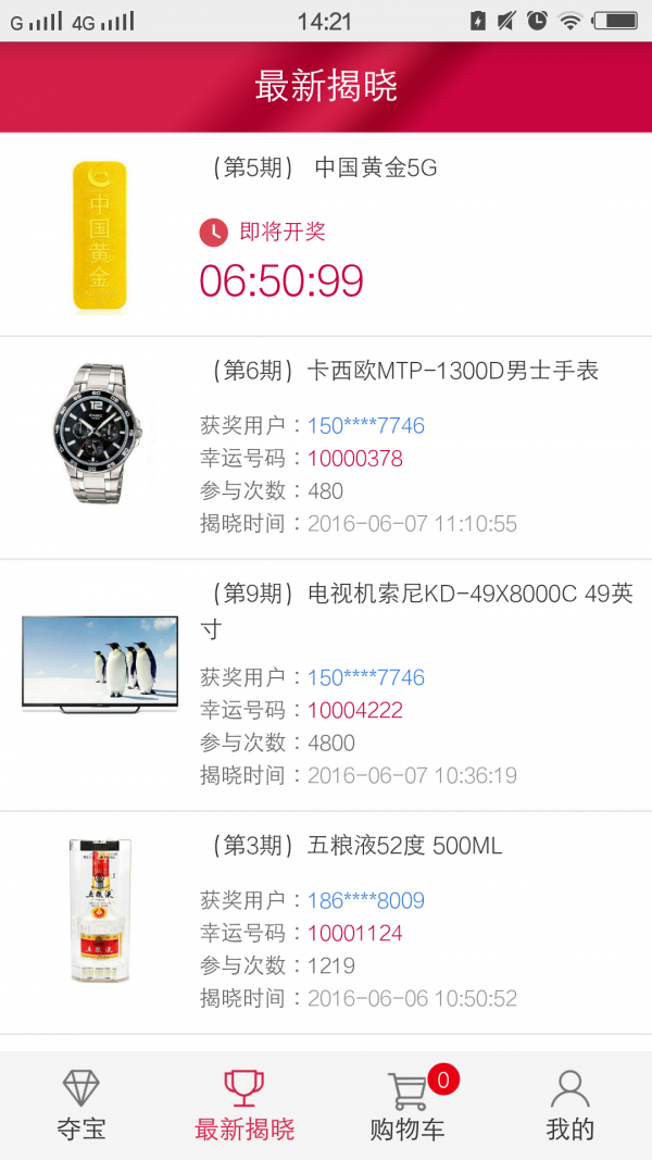 久久夺宝app是一款夺宝购物应用,用户可以通过软件体验当下最流行的一元购物玩法,让用户只花一元钱就能拿走惊喜大奖,享受超实惠的众筹购物。