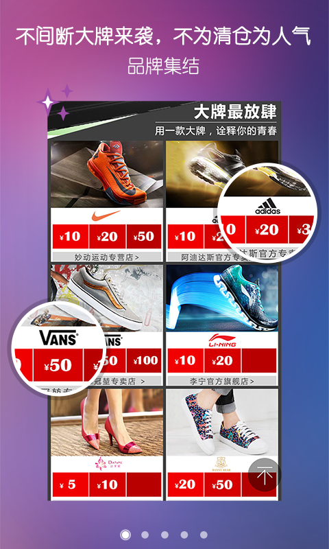 超过1000家品牌鞋服加盟,有超2千万双的名鞋库存,每日推出品牌鞋服团购,正品限时抢购!是您的手机装机必备,最 In 最 Nice 最 Top 的全都在这儿,汇聚美优品类、汇聚划算商品,秒杀各种明星衣橱优购物,告诉你什么值得买,更识货,一起把美丽说出来。