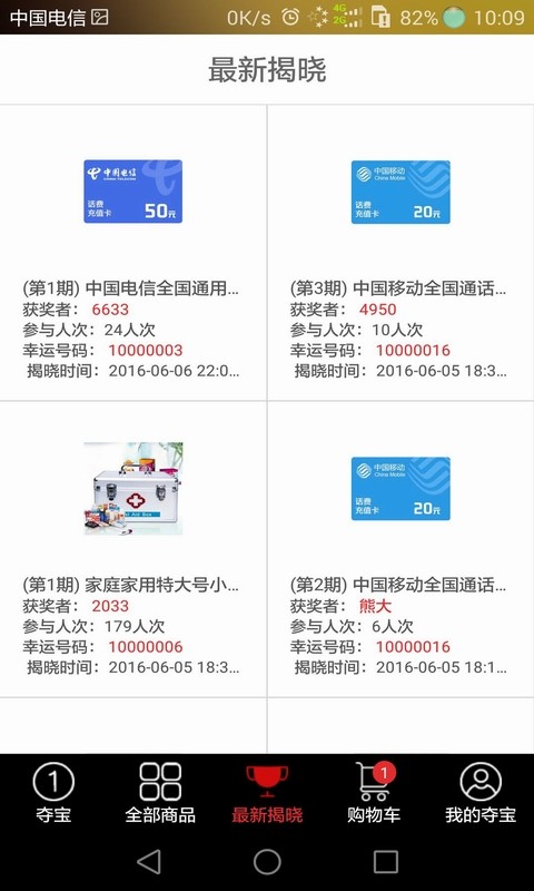 3、当一件商品所有“等份”全部售出后计算出“幸运夺宝码”,拥有“幸运夺宝码”者即可获得此商品。