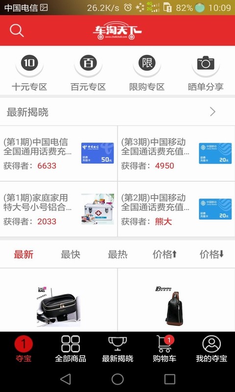 1、每件商品参考市场价平分成相应“等份”,每份1夺宝币,1份对应1个夺宝码。
