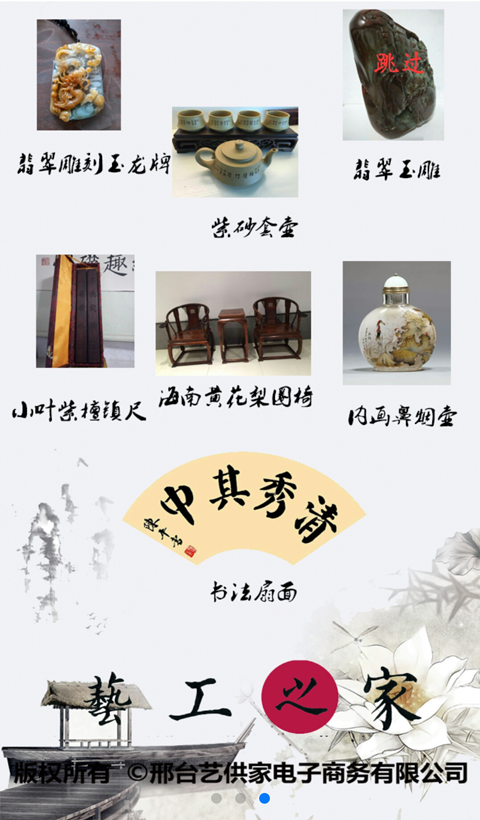 艺工之家app是亿供佳联旗下手艺人手工艺品交易平台,艺工之家是手艺人的家,由手艺人直接供货到买家手中,确保艺术品物美价实,避免买到假的艺术品,艺工之家,欢迎手艺人加盟,收藏爱好者关注。