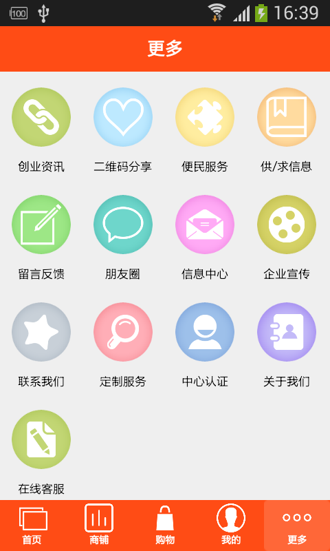 【购物】:本应用提供相关各种产品分类,方便客户查询购买。