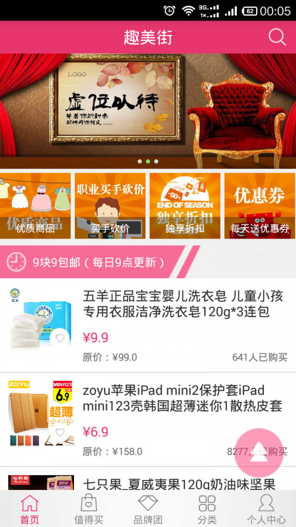 趣美街的“值得买”每天人工精选上百条天猫,淘宝各大商家的超优惠信息分享给用户,同时还提供优惠信息爆料渠道,优惠券,旨在为用户打造一个有信息量的电商优惠信息互动分享应用