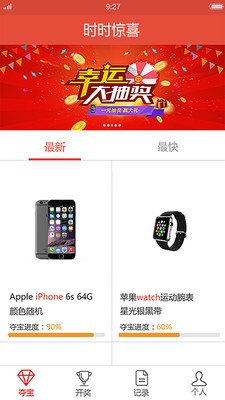 时时惊喜app是一款网络购物应用软件,提供海量潮流优质商品,参与夺宝活动,只需一元就有机会获得一件商品,随时查看夺宝记录,参与越多,机会越大,下一个中奖的就是你,快来下载吧!