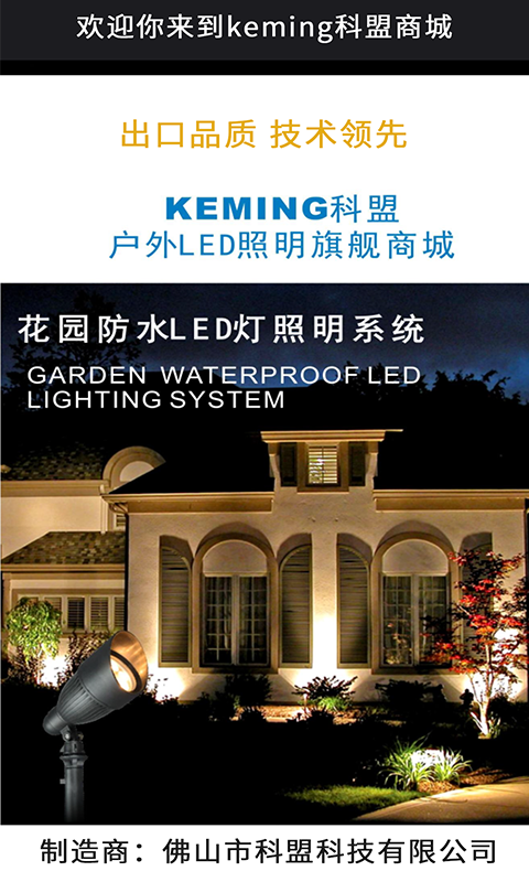 科盟旗舰商城,是经营户外花园LED灯饰,有佛山市KEMING科盟科技有限公司倾力打造的一站式移动购物平台,方便爱好者,发烧友浏览购物。