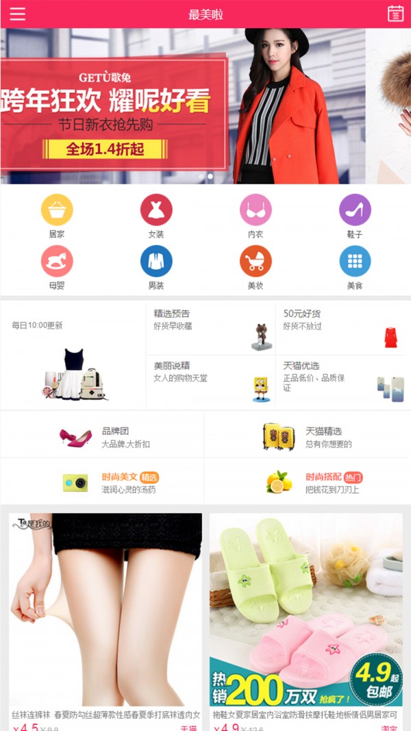 最美啦app汇聚全网最优质折扣商品,每日精选千款超值折扣商品9.9元起全场包邮1折特卖,每天10点限时秒杀!最美啦拥有一个最美的你!下载最美啦APP购遍全球正品!