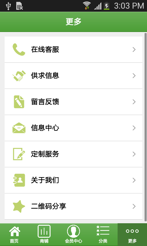 【分类】:本应用提供相关各种产品分类,方便客户查询购买。