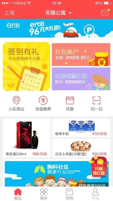 身边管家app是专为购物打造的应用,能随时查看周围的活动资讯,了解各种优质的商品,更拥有天天抢红包活动,是您社区购物的首选应用。