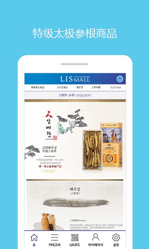 4. 人参: 由匠人经严格挑选后栽培的太极参和红参为原料制作的健康功能食品