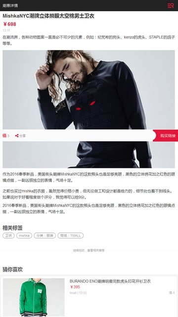 4.“潮牌值得买”目的是在帮助中国潮人们控制网购风险的同时,尽可能的向大家介绍高性价比的产品或尖货,省却您搜索、查找的时间,有效提高您手中等额货币的购买力。