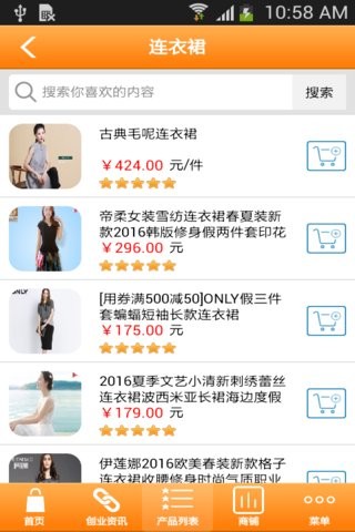 【产品列表】:本应用提供相关各种产品分类,方便客户查询购买。
