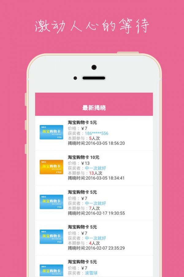 【最新揭晓】商品达到总参与人次,抽出1名商品获得者,喵喵会通过电话通知您领取商品。