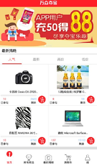 万众夺宝:以诚信为经营理念的众筹购物平台。 1元就能获得您心怡的商品。 1元的奇迹每时每刻都在发生哦! 1元带来无限惊喜!