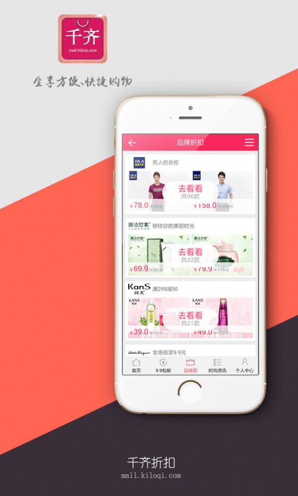 千齐折扣app,一家为您推荐优质商品、折扣特卖的网站,正品大牌精选商品一折起。数千淘宝、天猫用户的选择。商品质优价廉,有了千齐,从此不必再浪费您的时间就可以精准选到深度折扣、限时特卖的商品。每天上午十点上新、天天特价、9.9包邮、低价妥妥滴。千齐网 都齐了!