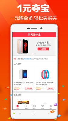 天天爱夺宝app是款1元购物应用,是金山公司出品的夺宝平台。在这里只需1元就能将想要的宝贝带回家,大家们等什么,快下载天天爱夺宝app,开始夺宝之旅吧!