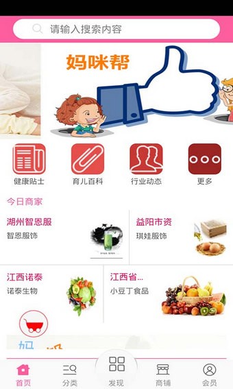 妈咪帮客户端对现有商务平台平滑扩展,无缝衔接,为客户和商家打造完美、多元化的服务体验,也能及时地与客户互动交流,合作会员还可以通过供求商机来展示自己的特色服务,拓展移动营销渠道,随时随地把握移动互联网商机。